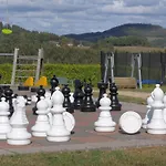 Los huéspedes también pueden disfrutar de una chimenea de piedra, así como de televisión por satélite.